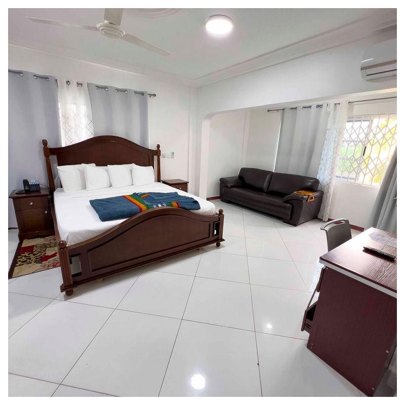Relax in our tastefully furnished rooms, thoughtfully designed to provide comfort, privacy, and convenience. Each room features a comfortable bed, work-friendly desk, air conditioning, reliable Wi-Fi, flat-screen TV, and a private bathroom with quality toiletries — ensuring a restful stay whether you’re in town for business or leisure.